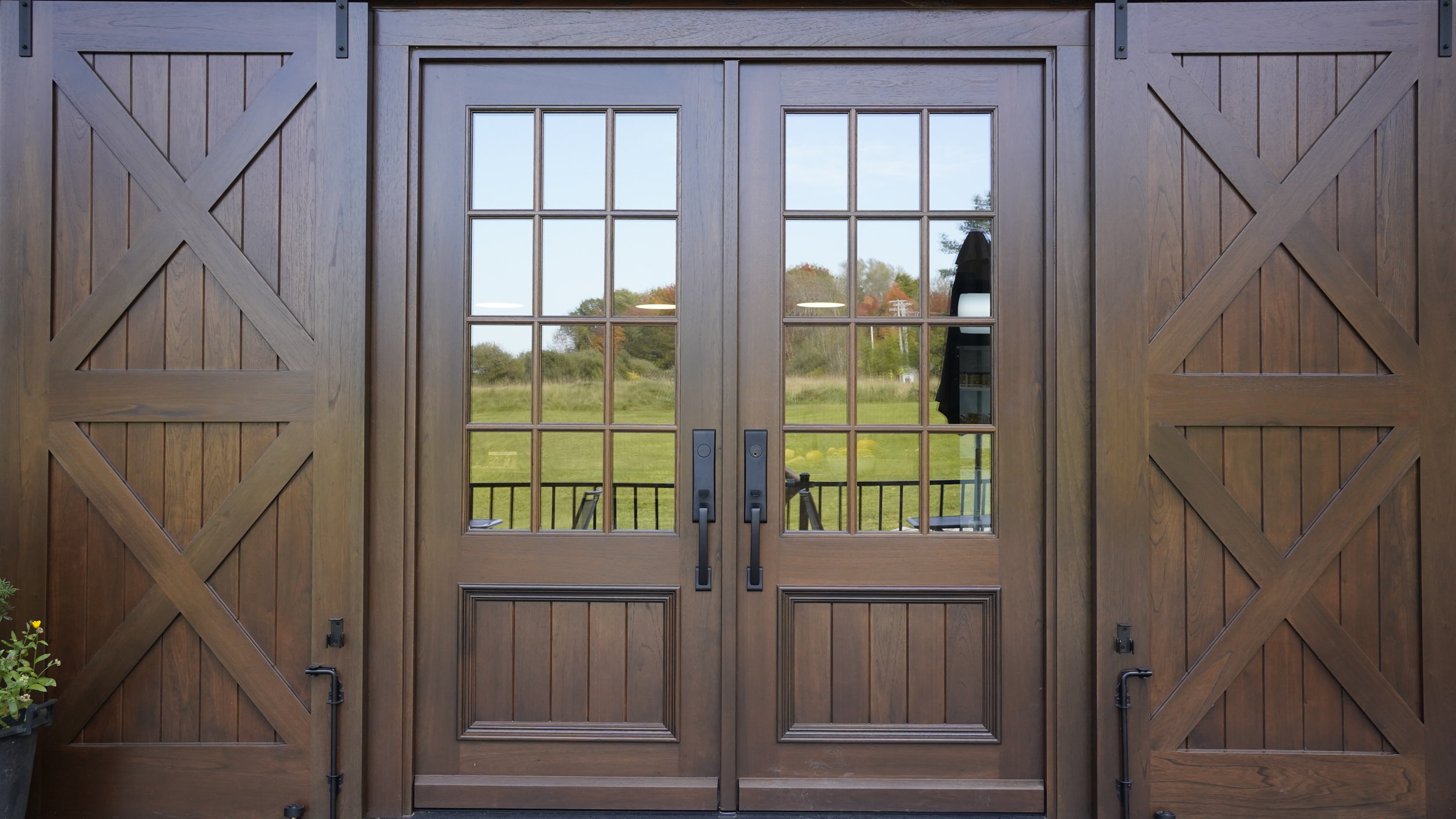 L’entreprise La Vallée du Moulin nous ont contactés pour produire des portes uniques pour l'entrée de leur boutique du terroir, située à Melbourne en Estrie.